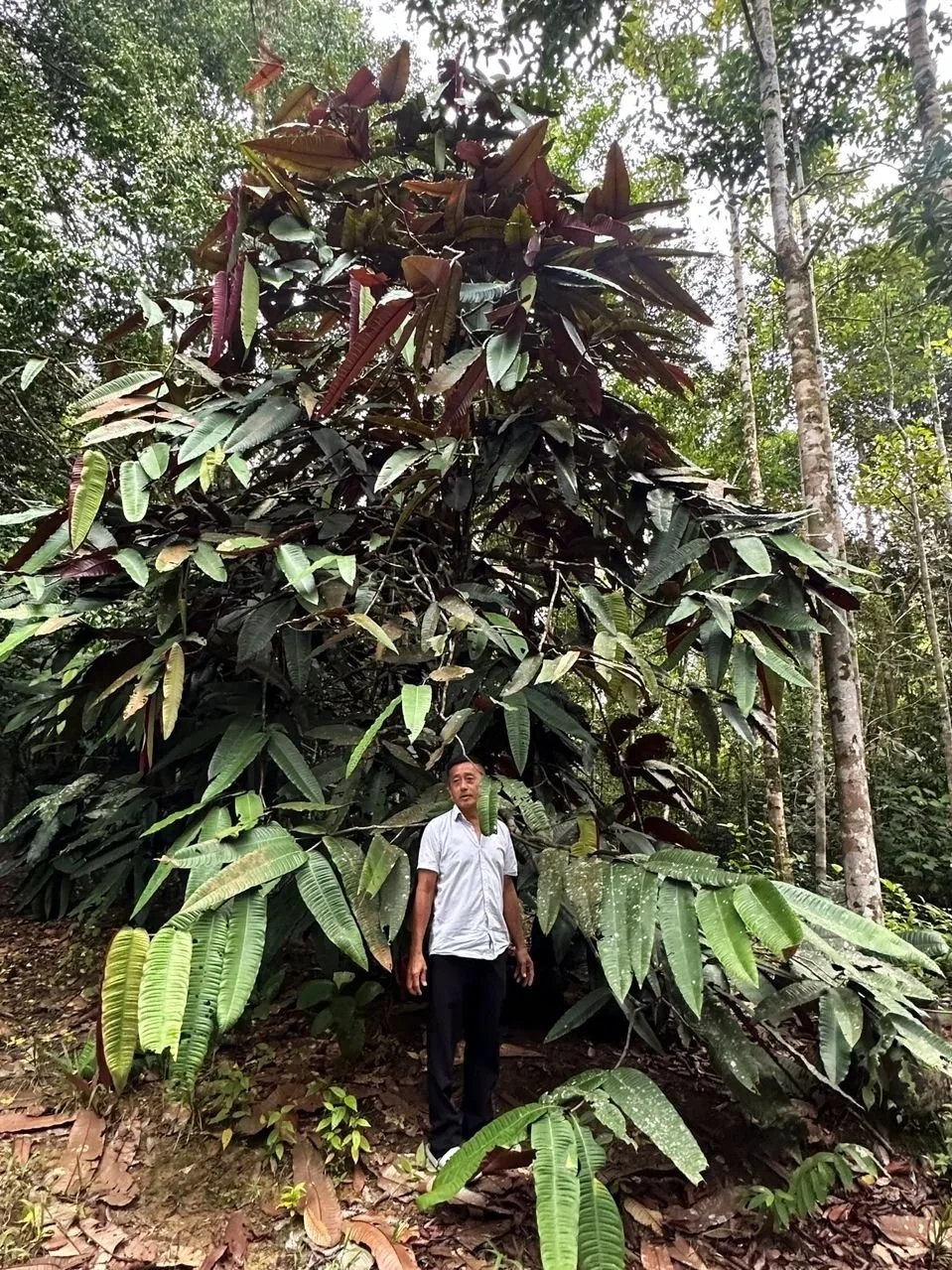Most of these trees are from the Dipterocarpaceae and Leguminosae family. Diterocarpaceae is often associated with commercial timber trees such as balau, cengal, kapur, keruing, meranti, merawan, mersawa and seraya. The main crown layer consists of various plants from different family such as, kedondong, kandis, penarahan and kelat with the height of between 20m and 40m. On the ground, there are small trees and palm which thrives under the crown. In the forest ground, there are seedlings, palms and herbs.